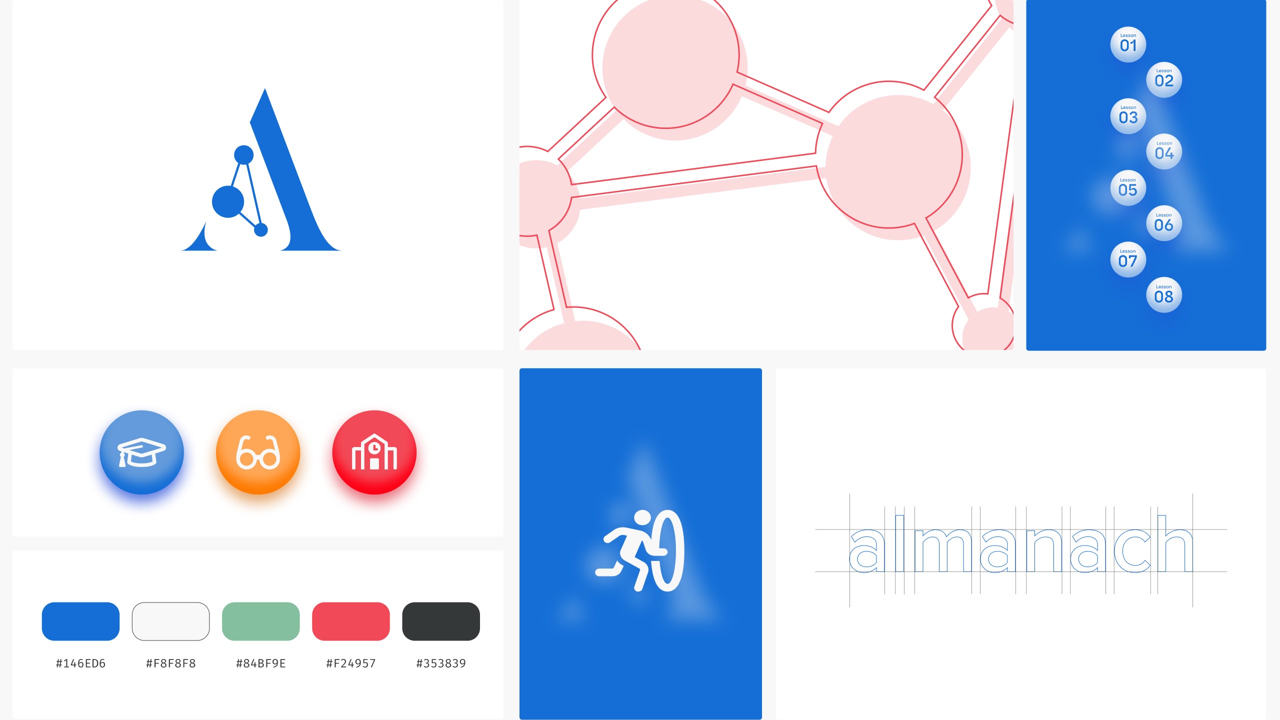 Almanach's visual identity centers on the idea of seamless connection, an immersive learning path that works for everyone. This concept shaped every design decision, from the lesson progression visuals to web and app.